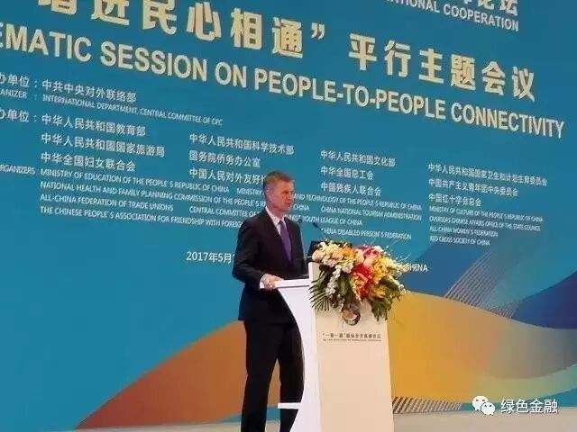 5月14日,“一带一路”国际合作高峰论坛在北京正式拉开帷幕,联合国环境署执行主任埃里克·索尔海姆应邀出席峰会并发表演讲。